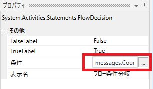さて、フロー条件分岐のプロパティで条件という項目があるので、そこに